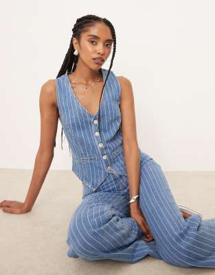 Nobody's Child - Stockwell - Gilet in denim blu gessato in coordinato