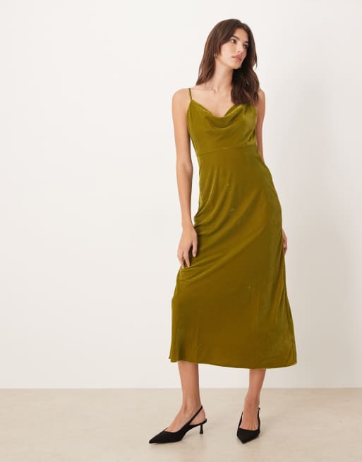 Nobody's Child - Trixie - Vestito al polpaccio con spalline sottili in velluto verde oliva