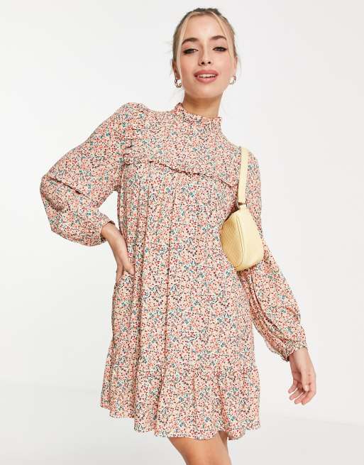 Nobody's Child - Vestito grembiule corto con maniche a palloncino a fiori blu giacinto