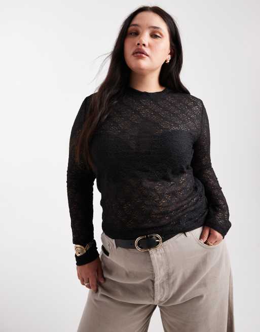 Noisy May Curve - Top a maniche lunghe nero in pizzo