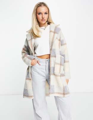Noisy May - Cappotto oversize effetto peluche crema a quadri