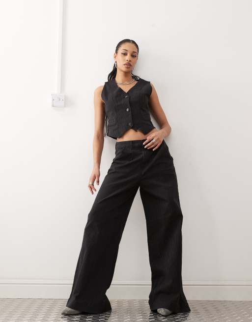 Noisy May - Jeans a fondo ampio e vita alta neri con motivo gessato in coordinato