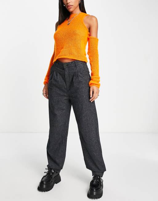 Noisy May - Pantaloni dad sartoriali gessati antracite