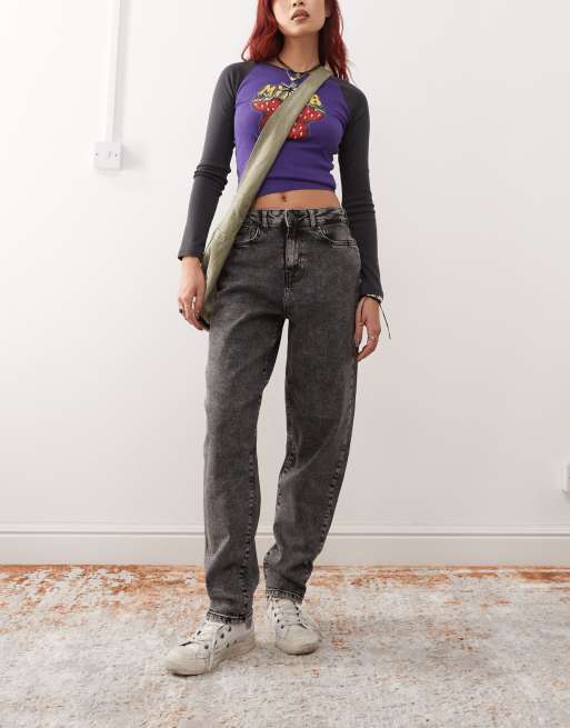 Noisy May - Rhoda - Mom jeans a vita alta grigio slavato