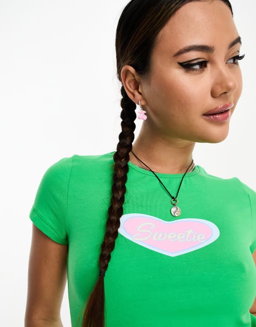 Noisy May - T-shirt corta verde con stampa di cuore