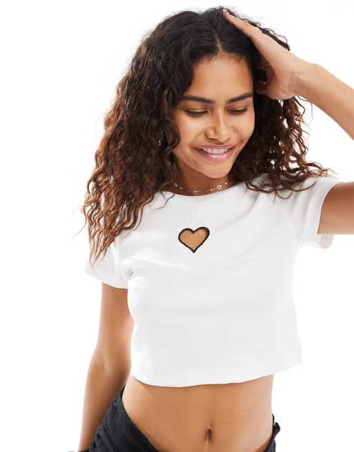 Noisy May - T-shirt mini corta bianca con cut-out a cuore