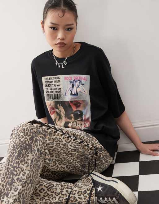 Noisy May - T-shirt oversize nera con stampa "Party"