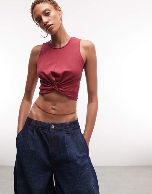 Noisy May - Top corto rosso con parte frontale attorcigliata