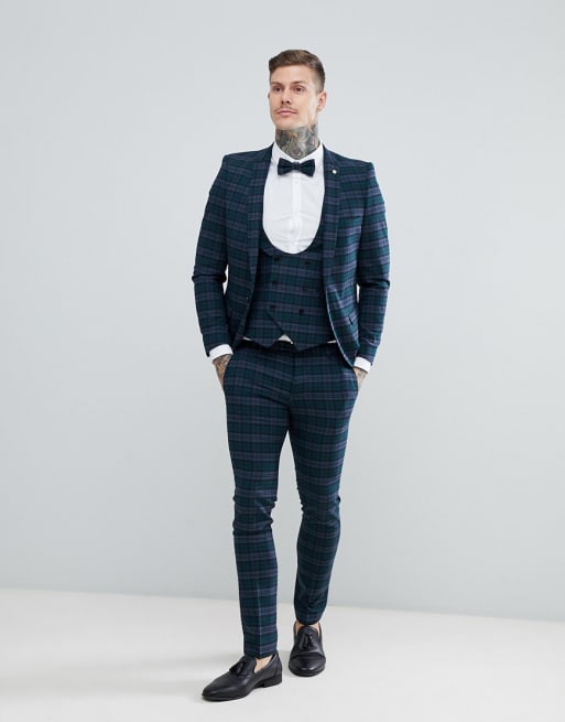 Noose & Monkey - Abito super skinny verde a quadri scozzesi