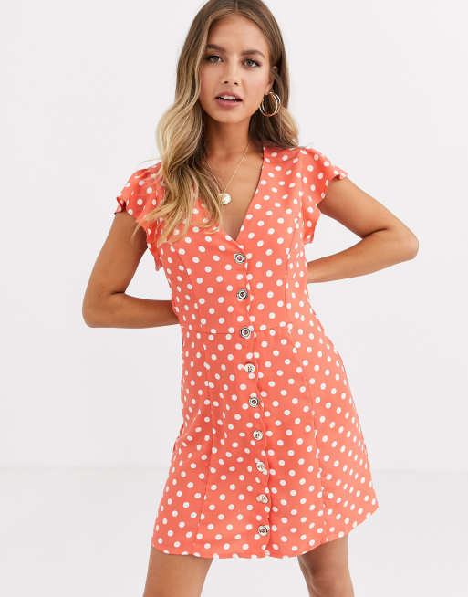 Oasis - Vestito a pieghe con bottoni a pois