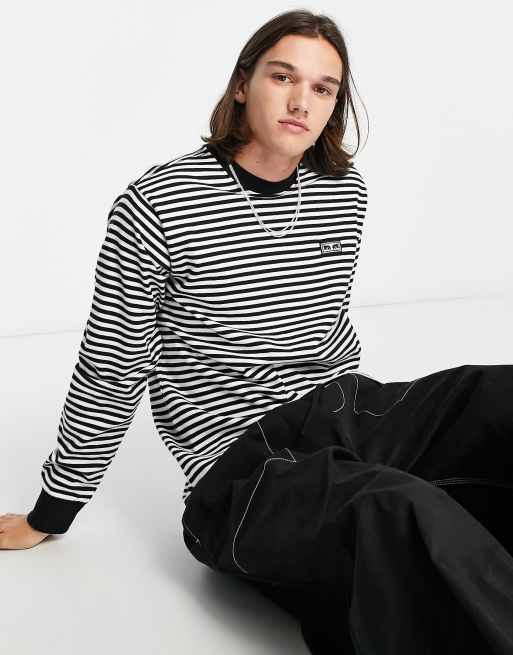 Obey - Established Works - Maglietta a maniche lunghe nera e bianca a righe con stampa di occhi
