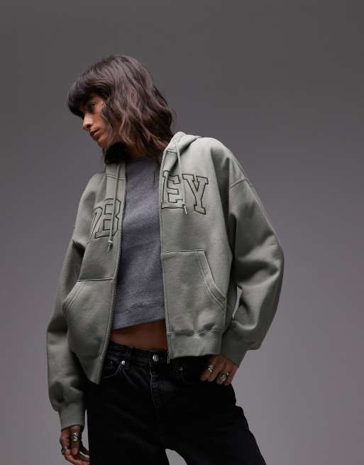 Obey - Felpa con cappuccio grigio chiaro stile college con zip
