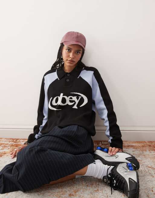 Obey - Polo da calcio nera in maglia con logo