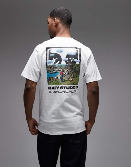 Obey - Sky Face - T-shirt bianca con stampa sul retro