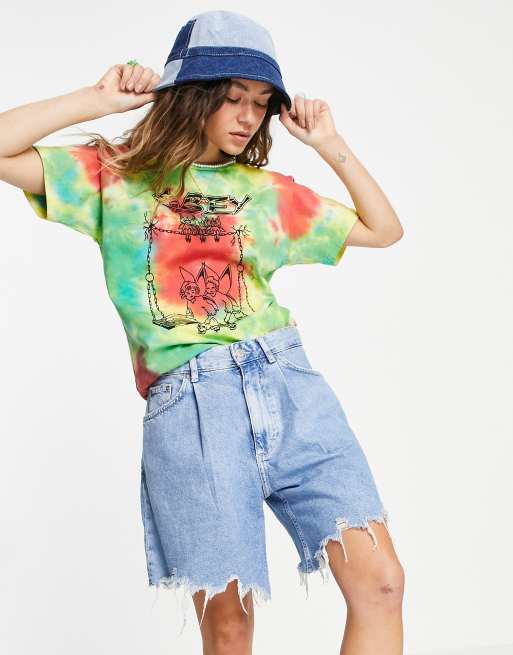Obey - T-shirt comoda con stampa con fatine tie-dye