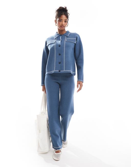 Object - Coordinato con pantaloni e camicia blu in maglia stile western