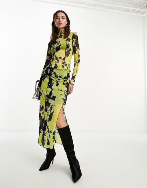 Object - Coordinato con top in rete e gonna con stampa lime mista e bordi ondulati