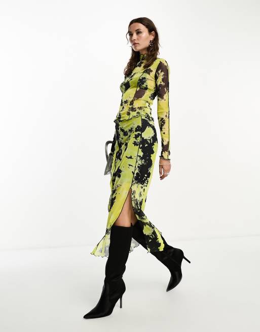 Object - Gonna lunga con stampa lime mista e fondo ondulato in coordinato