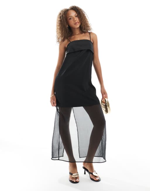 Object - Vestito lungo in chiffon nero con orlo trasparente