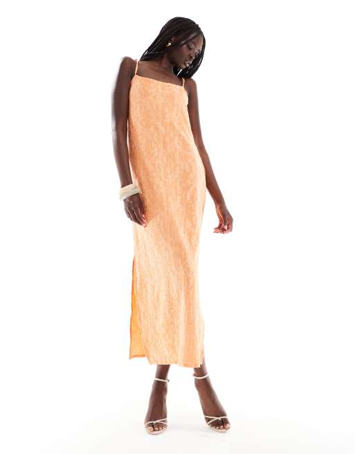Object - Vestito midi testurizzato arancione con spalline sottili