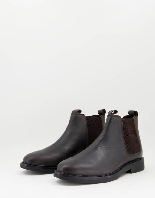 Office - Boss - Stivaletti Chelsea in pelle marrone con suola spessa