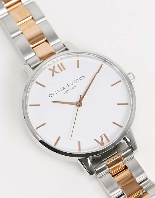 Olivia Burton - Orologio con quadrante bianco e bracciale oro rosa e argento