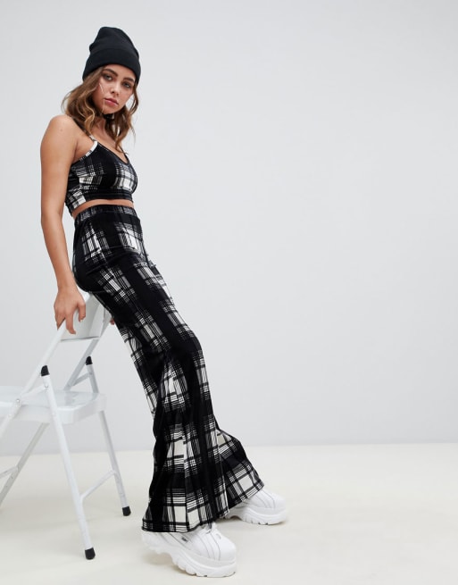 One Above Another - Canotta corta e pantaloni con fondo ampio in velluto a quadri in coordinato