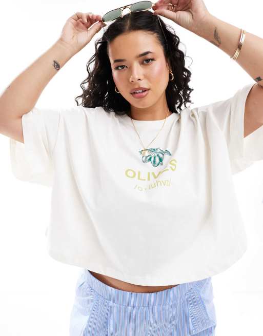 Only Curve - T-shirt corta bianca con stampa di olive