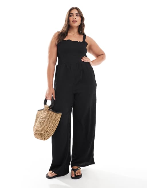 ONLY Curve - Tuta jumpsuit nera arricciata