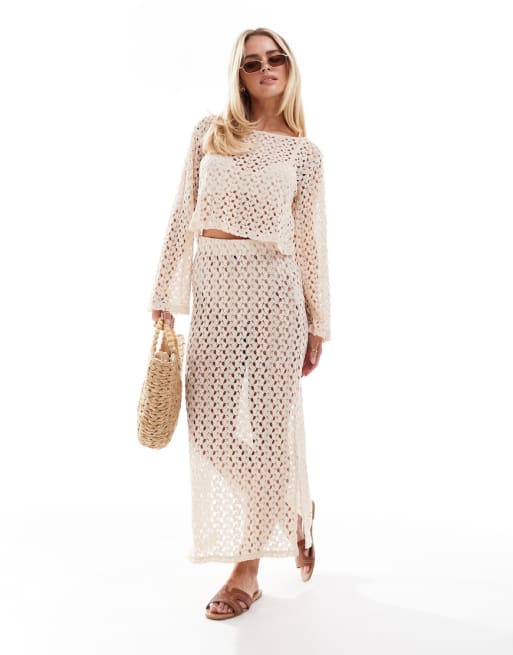ONLY Petite - Coordinato con top e gonna all'uncinetto crema