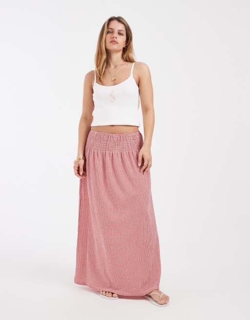 ONLY Petite - Gonna lunga rossa a quadretti