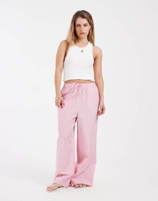 ONLY Petite - Pantaloni a fondo ampio rosa a righe