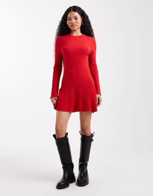 ONLY Petite - Vestito skater corto rosso in maglia