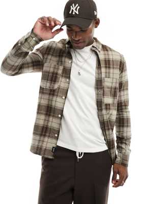 Only & Sons - Camicia a maniche lunghe a quadri marroni ed écru