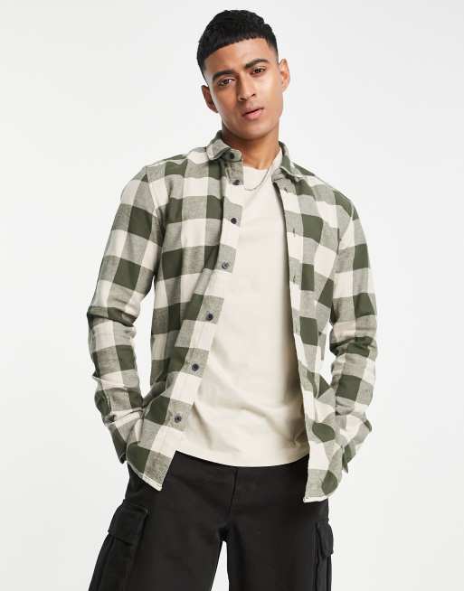 Only & Sons - Camicia a quadri grandi kaki e beige