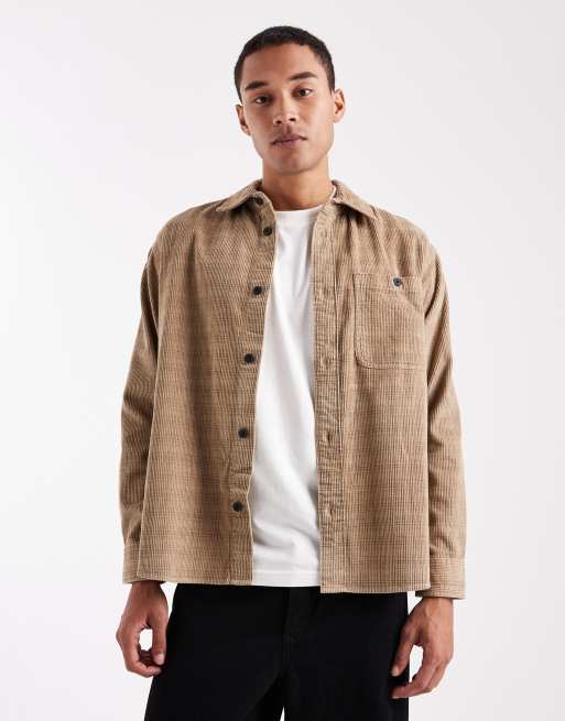 ONLY & SONS - Camicia giacca beige a quadri in tessuto a coste