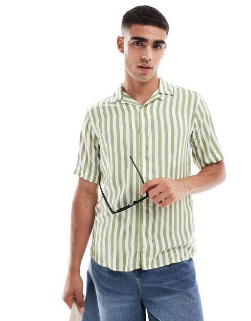ONLY & SONS- Camicia salvia a righe con colletto con rever
