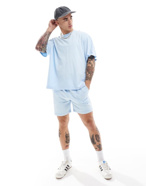 ONLY & SONS - Coordinato blu lavaggio chiaro con T-shirt e pantaloncini