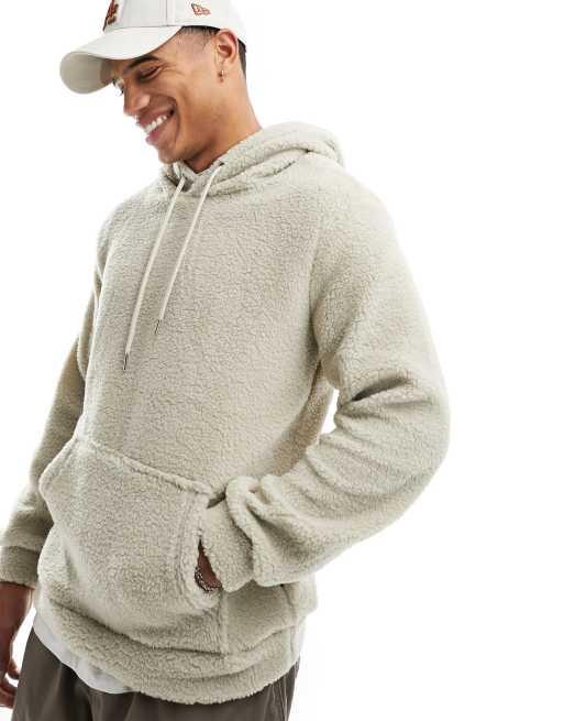Only & Sons - Felpa con cappuccio in pile borg beige effetto peluche