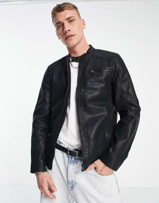 Only & Sons - Giacca biker in pelle sintetica nera