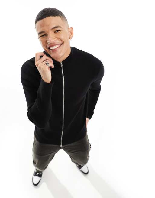 Only & Sons - Maglione nero a coste con zip