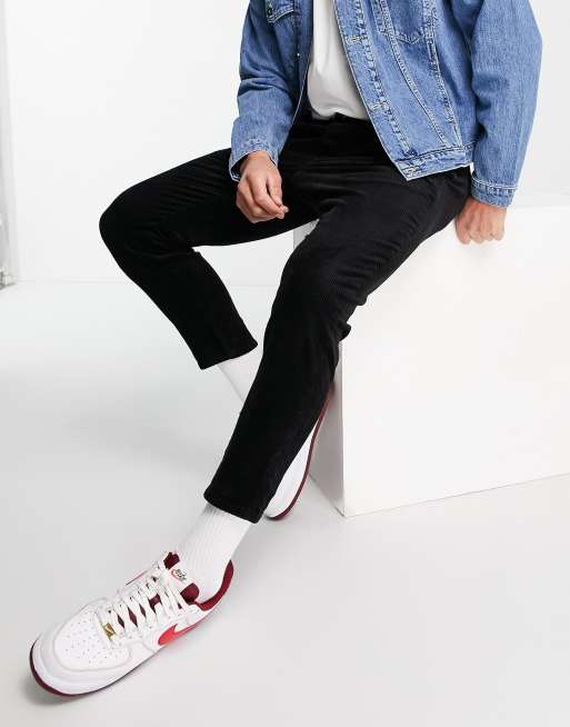Only & Sons - Pantaloni slim in velluto a coste neri con coulisse