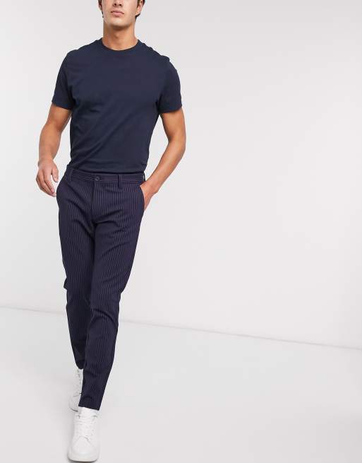 Only & Sons - Pantaloni stretch eleganti blu navy gessato