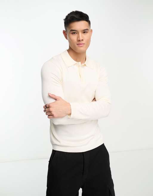 Only & Sons - Polo in maglia bianco sporco a maniche lunghe