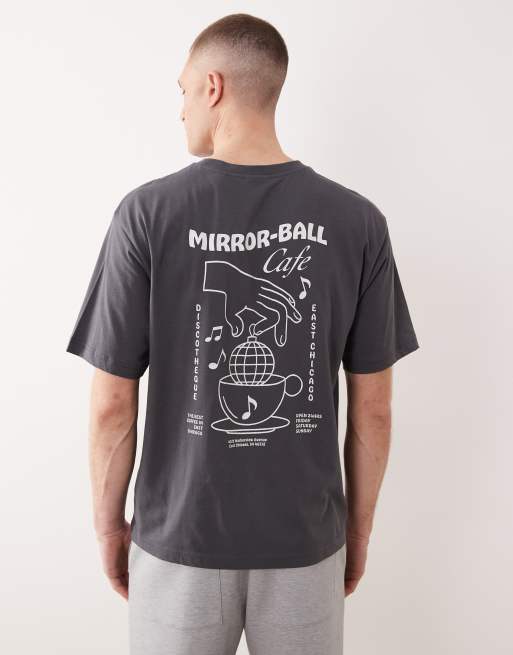 ONLY & SONS - T-shirt oversize antracite con stampa "Mirror Ball" sul retro