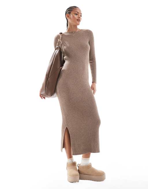 ONLY Tall - Vestito lungo beige a coste con scollo a barchetta