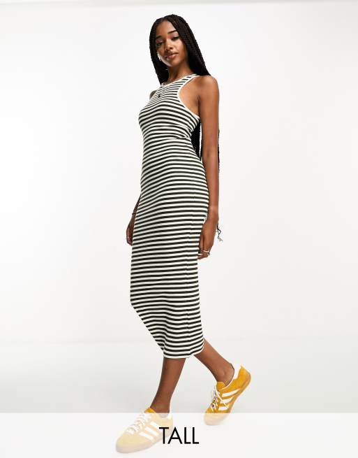 Only Tall - Vestito midi a righe kaki e bianche con scollo a vogatore