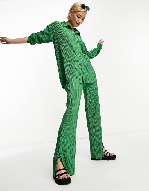 Esclusiva Only - Pantaloni a fondo ampio plissé verdi in coordinato