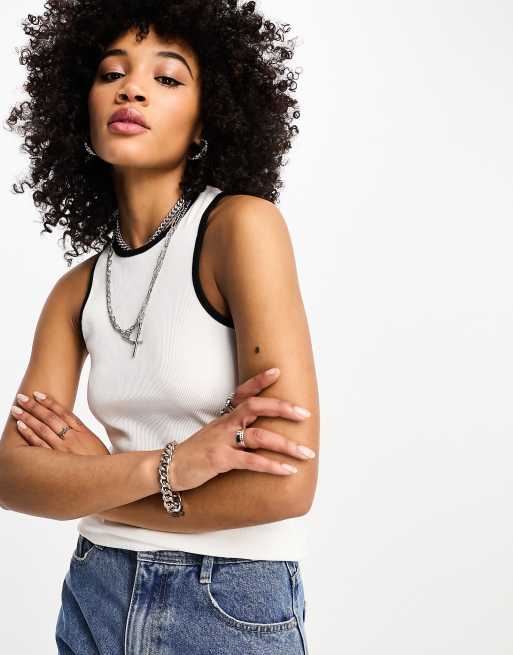 Esclusiva Only - Top accollato bianco e nero a coste con profili a contrasto