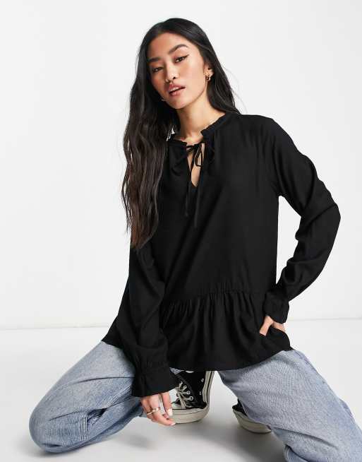 Only - Binna - Blusa grembiule in tessuto nero